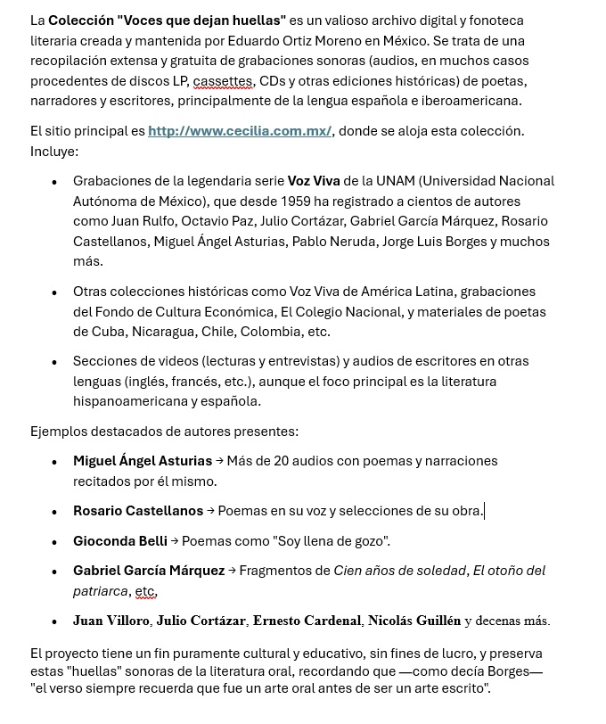Al día de hoy, el catálogo de voces de la colección Voz Viva, de la UNAM